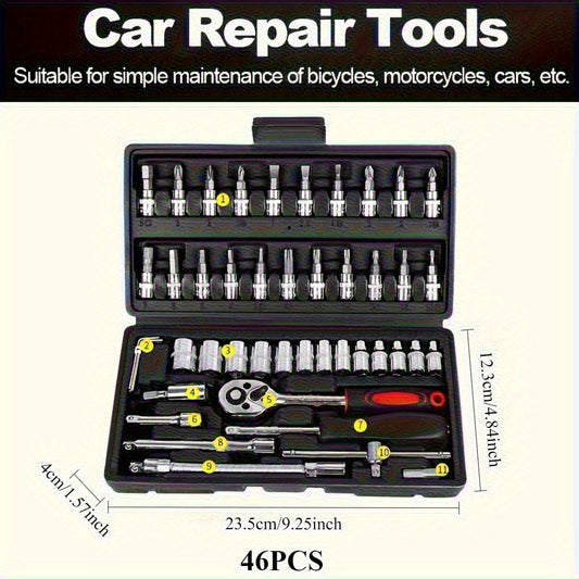 Mechanical Tool Set, Multifunctional Car Repair Toolbox, Suitable for Cars, Bicycles, Motorcycles and 1/2" 3/8" SAE & Metric Sizes Universal Wrench Kit Including Tooth Ratchet Wrenches, Household, Garage, Bicycle Trunk Specia