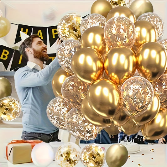 10 shiny golden confetti balloon sets, suitable for wedding, anniversary decoration, birthday decoration, graduation decoration, Christmas, Mother's Day, gender revealing, dance, party decoration, indoor and outdoor decoratio