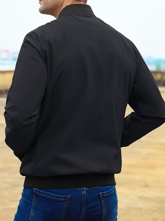 Men's Versatile Baseball Jacket - Lightweight Polyester Windbreaker for Spring/Fall | Minimalist Casual Design | Breathable & Age-Free Outerwear