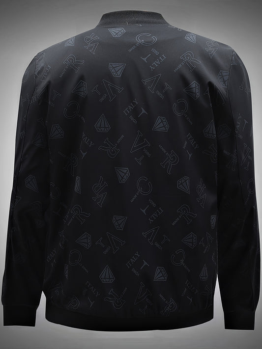 Men's Fashion Bomber Jacket Spring/Fall Collection, Casual Alphabet Print Polyester Jacket with Zipper, Baseball Collar, Long Sleeve, Regular Fit, Non-Stretch Woven Fabric, Casual Outfit with Pocket