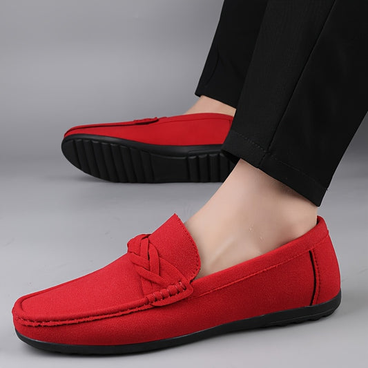 Men's Handmade Woven Penny Loafers - Vintage Classic Slip-On Shoes in Vibrant Red, Super Fiber Upper, Comfortable EVA Insole & Durable Rubber Sole, All-Season Indoor/Outdoor Wear for Weddings, Business, Office, Driving & Casu