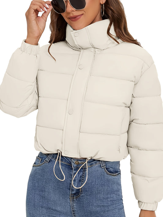 Women'S Lightweight Winter Jacket - Elegant Stand Collar Short Length Quilted Coat with Button Front, H-Silhouette Regular Fit, Long Sleeve Casual Outerwear for Cold Weather, Winter Coats, Seasonal Fashion, Minimalist Style,