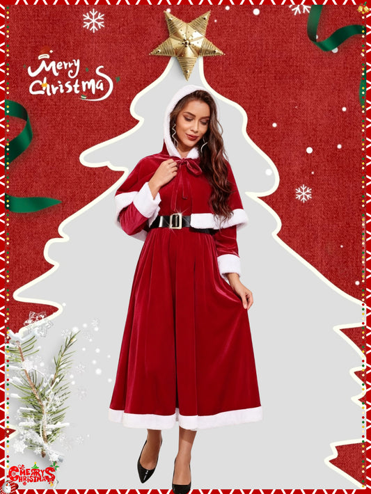 Vintage Velvet Red Dress with | Elegant Long Dress with Low Collar and Solid Color Pattern for Festive Atmosphere.