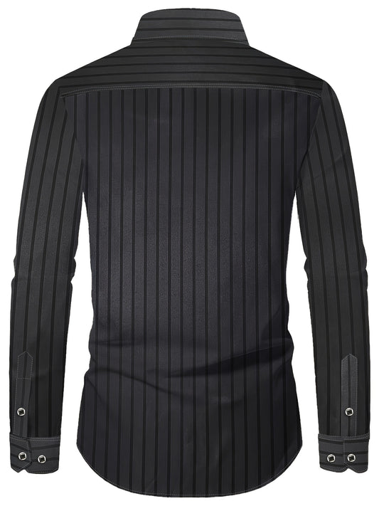 Men's Slim-Fit Striped Long Sleeve Shirt - Polyester, Machine Washable, Business Casual Style for Spring/Fall, 1856 Print, Hexagon Collar