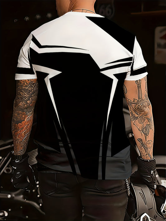 Men'S 3D Printed Short Sleeve T-Shirt - Stylish Black and White Geometric Design, Lightweight Polyester Fabric, Regular Fit Crew Neck for Casual Wear, Modern Apparel Geometric Pattern Shirt Lightweight Tshirt
