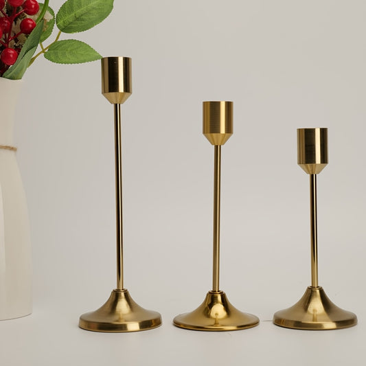 3pcs Set of Golden Brass Candle Holders, Vintage Modern Decorative Centerpiece Candle Stands, Suitable for Mantel, Wedding, Christmas Party, Housewarming Gift, Home Kitchen Dining Table Accessories (Candles Not Included), Ho