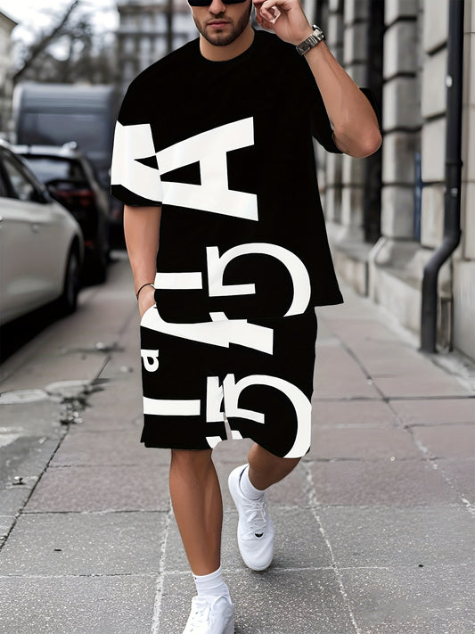 Men's Printed Short Sleeve T-Shirt + Shorts Set Casual Sporty Outfit Breathable Outdoor Leisure Men's Tee and Five-Pocket Pants Summer 3D Print Set Father's Day Gift for Adults