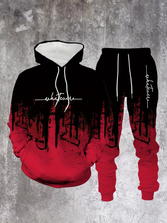 Men's Two-piece Set with Printed Hoodie and Sweatpants