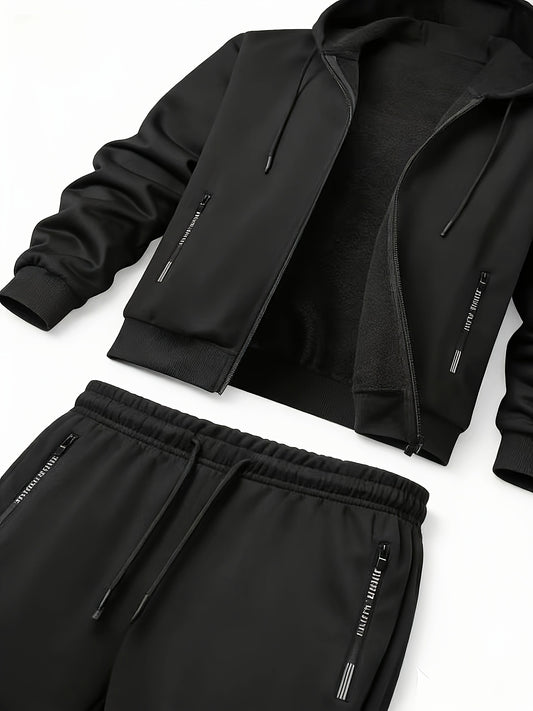 Men's Trendy Autumn-Winter Hooded Jacket Set with Calvin Print, Casual Youth Sportswear Outfit