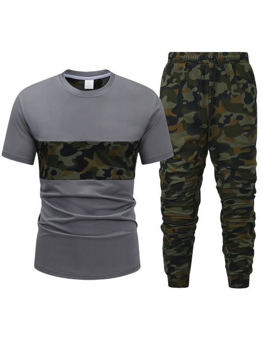 Men'S Camouflage Short Sleeve T-Shirt & Pants Set - Breathable, Quick-Dry Knit Fabric, Casual Style, Regular Fit, Ideal for Outdoor Activities, Hiking, and Fishing, Outdoor Clothing | Casual Style | Comfortable Fit
