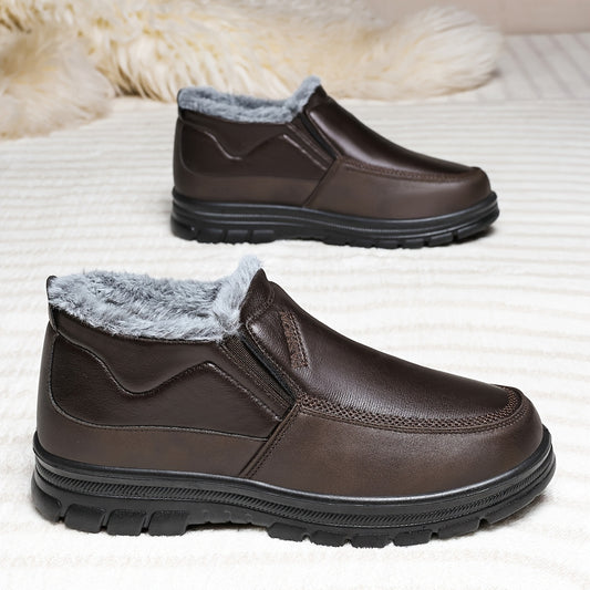 Men'S Slip-On Winter Snow Boots with Fleece & Arch Support - All-Season Cold Weather Hiking Shoes, Slip-Resistant Rubber Sole, Round Toe Design For Casual & Outdoor Wear, Hiking Boots