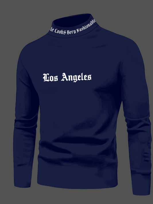 Men'S Long Sleeve Crewneck T-Shirt - Los Angeles Print, Soft Fabric, Casual Fit for Fall Sports Fitness Activities, Weekend Casual Top Trendy Casual Style Smooth Texture Fabric