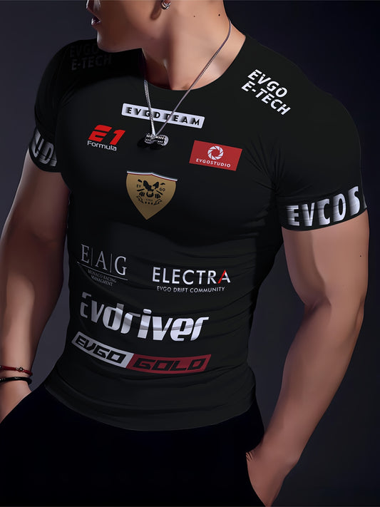 Men'S Casual Short Sleeve T-shirt, Polyester 100% 3D Print Crew Neck Tee with Slight Stretch, Regular Fit, 110g/m² Knit Fabric
