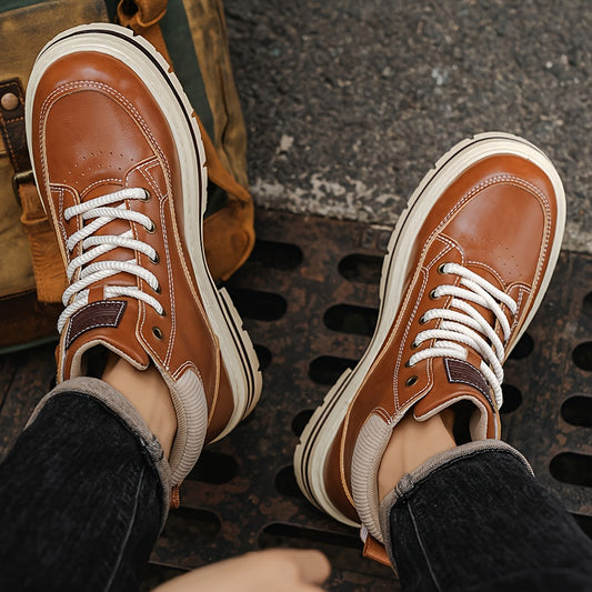 Men'S Retro British Style Mid-Top Work Boots - Black Faux Cover with White Laces, Durable PVC Sole, Comfortable Fabric Lining for Casual & Streetwear, Spring/Fall Footwear, Streetwear Footwear | Retro Style Boots | Durable PV