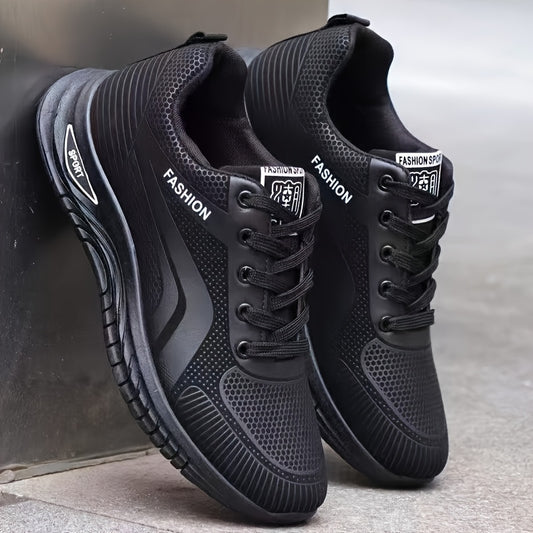 Men's Breathable Lightweight Running Shoes with Air Cushion Technology - Black Low-Top Sneakers for Walking, Jogging, Training Casual Wear, PU Upper MD Sole, All-Season Comfort, Sleek Sporty Design, Cushioned Support