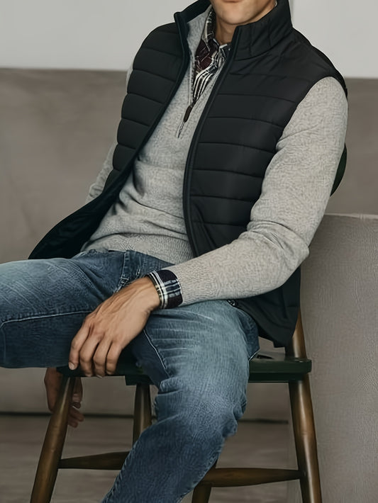 Men's Fashion Vest, Spring/Autumn Outerwear, Trendy Padded Jacket, Suitable for Daily and Outdoor Wear