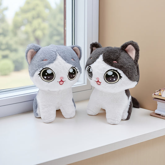 Adorable Kawaii Cat Plush Toy - Soft, Fluffy Stuffed Animal in Gray/Black - Perfect for Home & Sofa Decor, Ideal Birthday or Holiday Gift