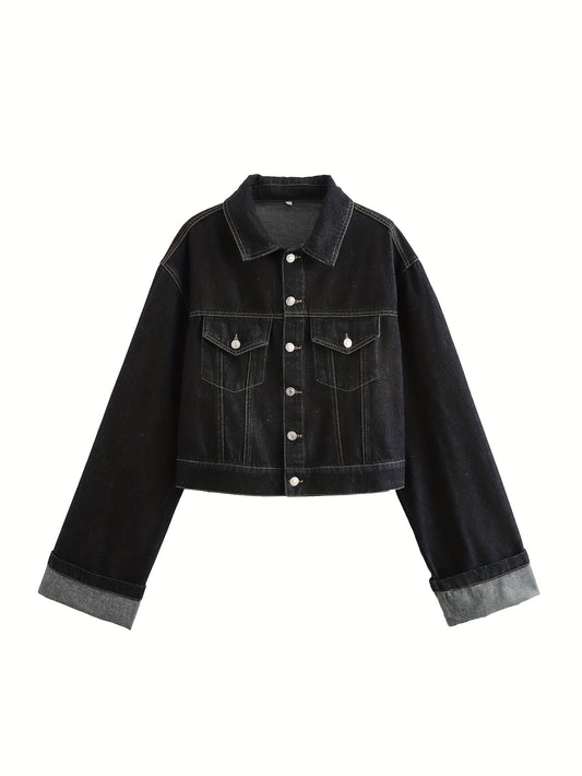 One Summer-Autumn Women's Short Rolled Sleeve Oversized Style Jacket with Contrast Stitching, Metal Buttons for Urban Street Fashion, Jackets for Women High Quality, Casual Wear, Everyday Jacket, Modern Design, Metal Detailin