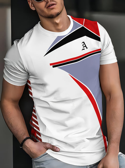 Men's 3D Digital Print Short Sleeve T-Shirt - Bold Striped Color Block Design, Breathable Round Neck, Lightweight All-Season Casual Tee, Machine Washable, Everyday Outfit, Modern Fashion, Durable Tee, Printed Shirt, Streetwea