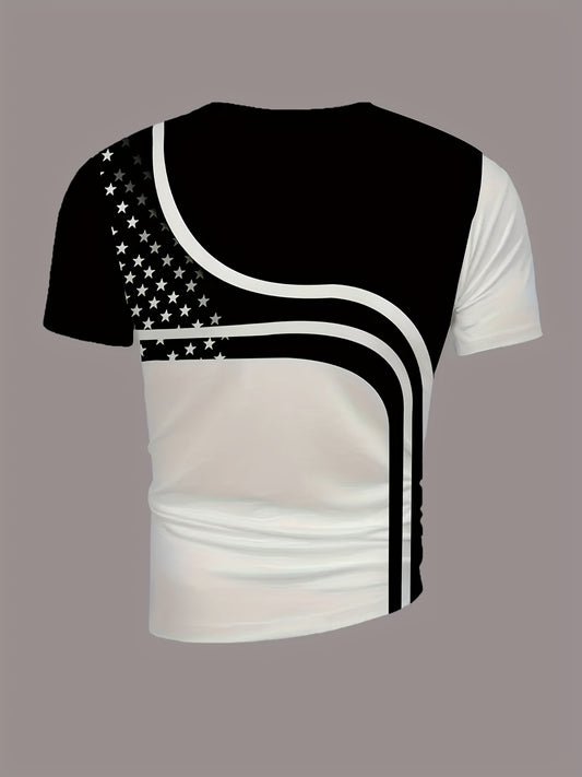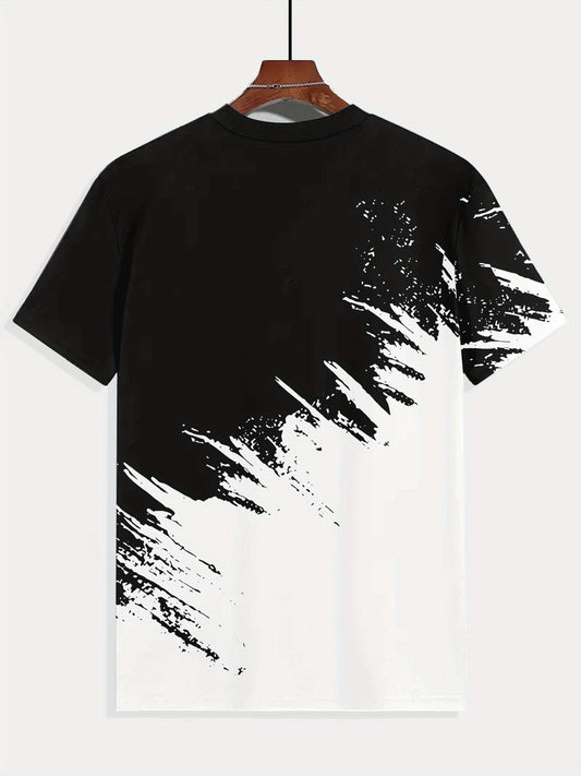 Men's 3D Print Graphic Short Sleeve T-Shirt - Casual Round Neck Regular Fit Tee with Random Unique Design, Machine Washable for Casual Attire, Modern Print Shirt, Durable Casualwear, Comfortable Fabric, Weekend Clothing, Tren
