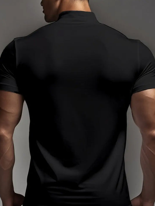 Men's Summer Classic Half-High Neck Casual T-Shirt - Solid Black, Regular Fit, Breathable Versatile for Casual Attire, Office, or Social Events, Summer T Shirts, Quality Fabric Shirt