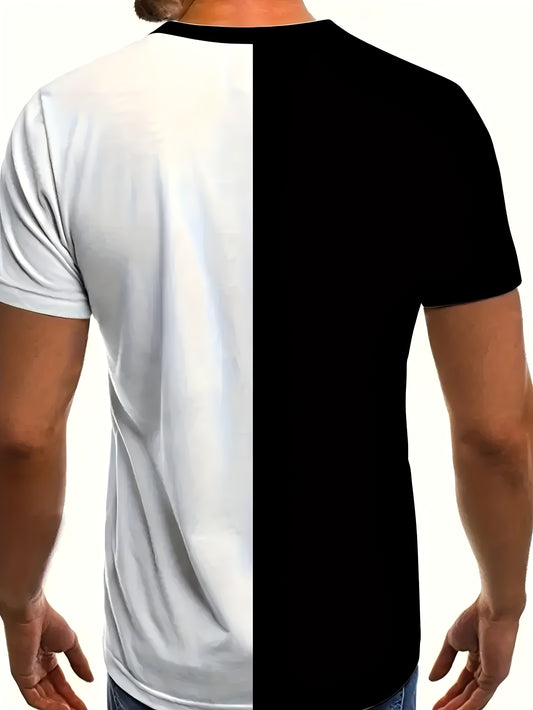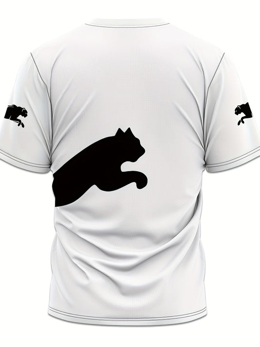 Men's 3D Print Cat Graphic T-Shirt - Casual Short Sleeve Summer Tee with Black White Contrast Design, Breathable Round Neck Top for Outdoor Activities, Machine Washable, Relaxed Fit Shirt, Durable Fabric, Detailed Print Qua