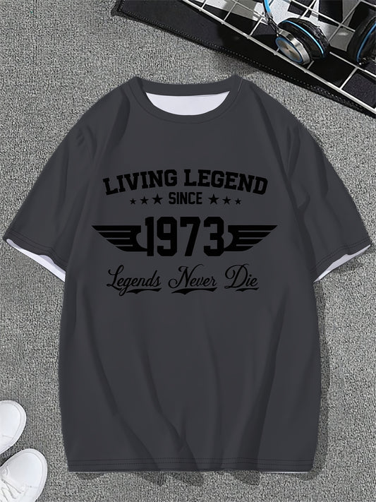 Men's "Living Legend 1973 to Present" Graphic T-Shirt - Grey 3D PrintCasual Summer Street Style Short Sleeve Crew Neck T-Shirt with rugged design. Features technical fabric for breathability, cooling comfort, quick-dry perfor