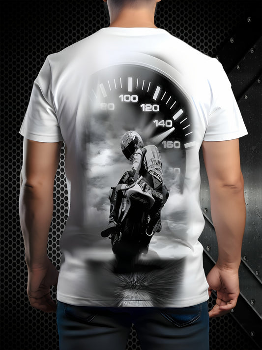 Men'S Motorcycle Graphic T-Shirt - Casual Crew Neck Short Sleeve Tee with Throttle Gauge Design, Breathable Summer Sportswear for Adults, Motorcycle Enthusiast Gear Stylish Motorcycle Print Comfortable Fit