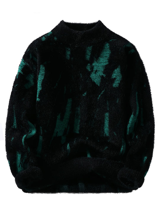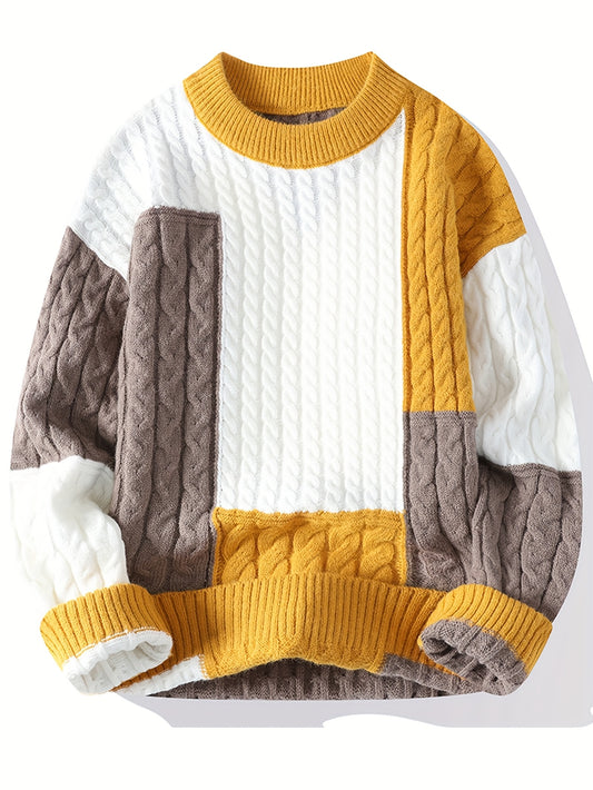 New Autumn-Winter Round Neck Men's Sweater, Fashion Casual Trendy Patchwork Knitwear, Warm Thick Stylish Loose Top