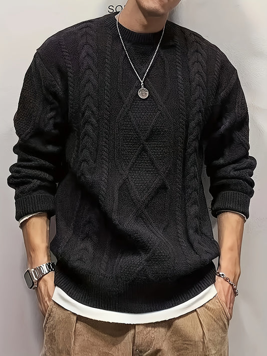 Men'S Knitted Twisted Texture Sweater, Stylish Casual Pullover for Autumn And Winter