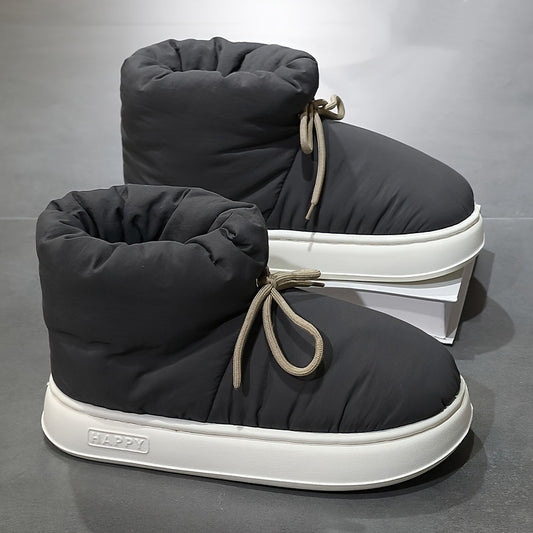 Men'S & Women'S Slip-On Snow Boots - Winter Warmth with Plush Lining, Soft Fabric Upper & Cushioned EVA Sole, Round Toe Short Ankle Boots for Indoor/Outdoor Use, Unisex Casual Footwear in Black/Gray/Navy Blue - All-Season Com