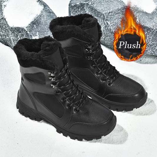 Men'S Mid-Top Winter Snow Boots - Lightweight, Non-Slip, Warm Plush Lining, Durable MD Sole, Black Workwear & Street Style for Outdoor Sports, Hiking, and Daily Leisure, Winter Boots, Hiking Footwear, Sleek Boot Design, Flexi