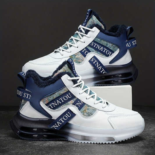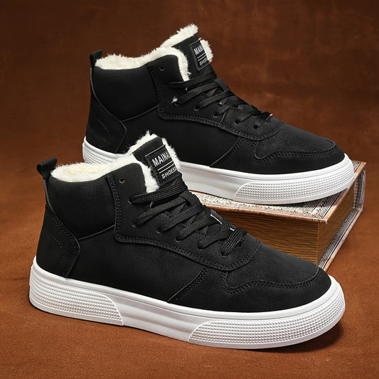 Men'S High-Top Winter Running Shoes - Lightweight Warm Fleece-Lined Sneakers with Synthetic Synthetic Upper, EVA Sole & Breathable Fabric Lining for Cold Weather, Retro Casual Sneakers for Jogging, Gym, Casual Attire - Black/