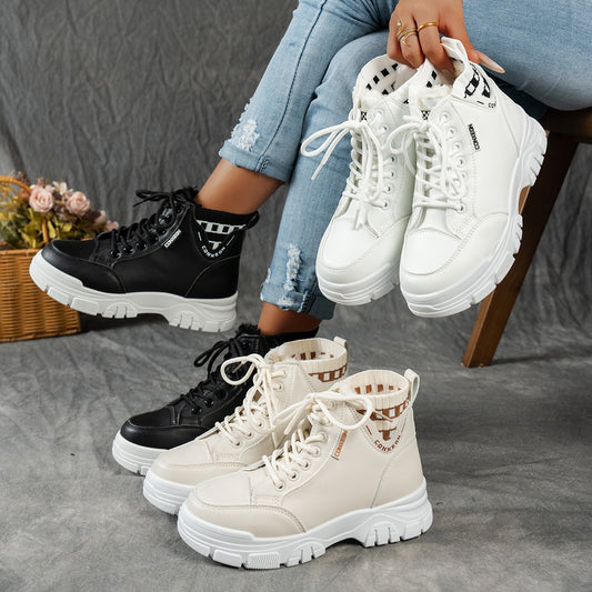 gfhfgjjfg Women's Casual High-Top Platform Ankle Boots with Lace-Up Closure, Thick Rubber Sole & Faux Cover Upper - Winter Warm Round Toe Boots for Casual Attire (Black/White/Beige), Comfortable Footwear, Durable Traction Foo