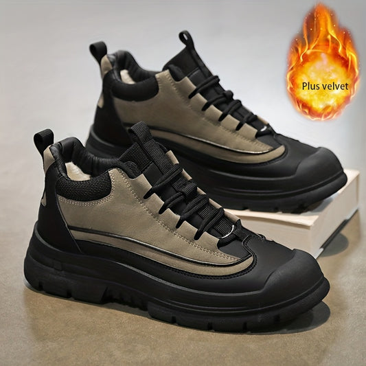 Men's Mid-Top Lace-Up Boots with Warm Plush Lining for Comfortable Winter Outdoor Street Walking and Strolling, Winter Boots