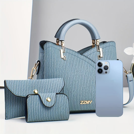 3pcs Set Striped Fashion Handbags, Multifunctional Large Capacity Crossbody Bag with Stylish Design, New Fashionable Women's Small Square Shoulder Bags Versatile Casual Multi-Layer Large Capacity Single-Shoulder or Crossbody