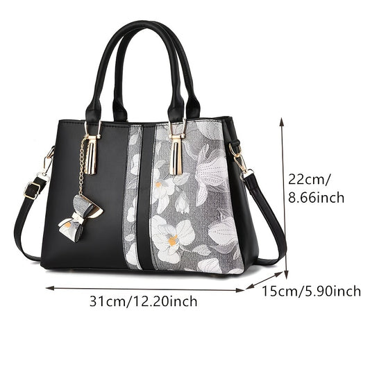 Elegant Floral Print Women's Handbag - Chic Colorblock Handbag with Zip Closure, Durable PU Material