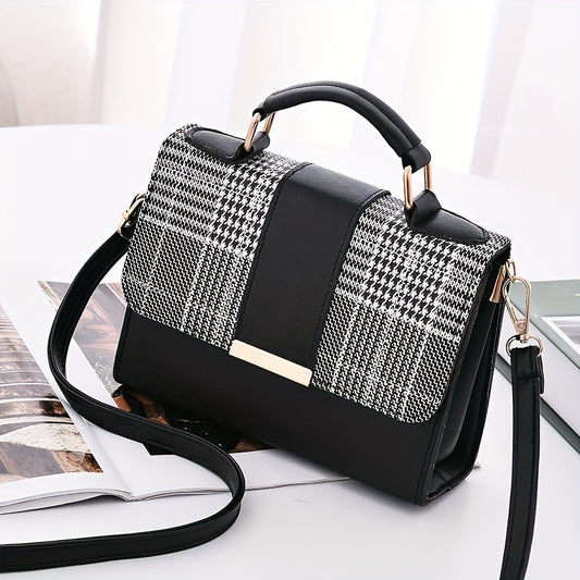 Mini Checkered Crossbody Bag, Fashion Top Handle Square Purse, Casual Shoulder Bag For Women