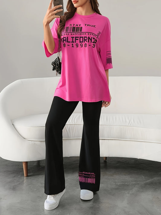 Women's Fashion Letter Print Round Neck Top and Pants Set