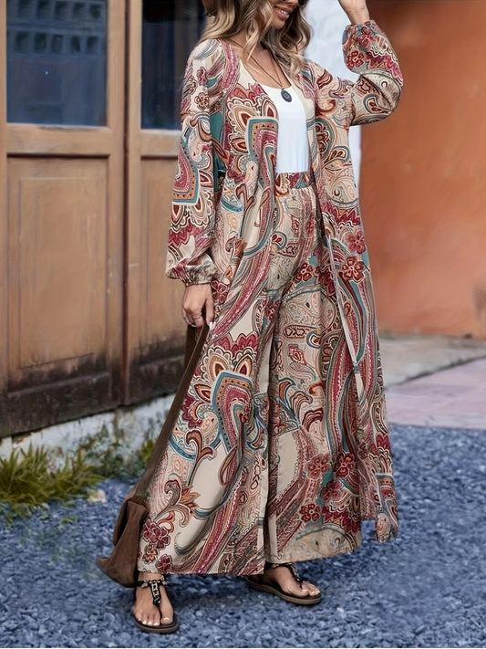 Targeted Traffic Model Women's Persian Brocade Print Open Front Jacket and Pants Set