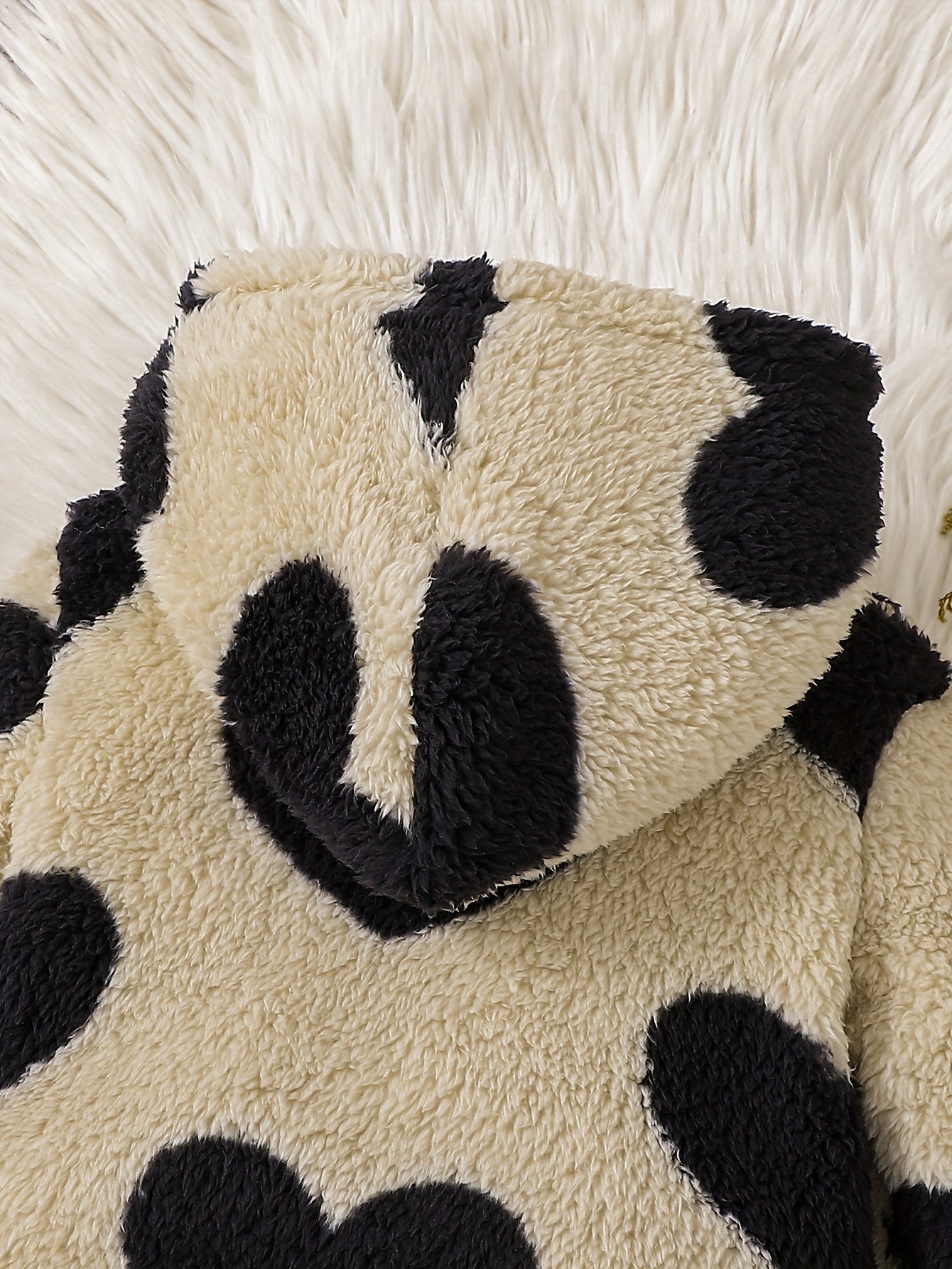1- Girls' Fashion Casual Heart Print Plush Hoodie and Patchwork Knit Pants Set, Suitable for Autumn and Winter, School, Leisure, Outdoor Sports, Perfect for Outdoor