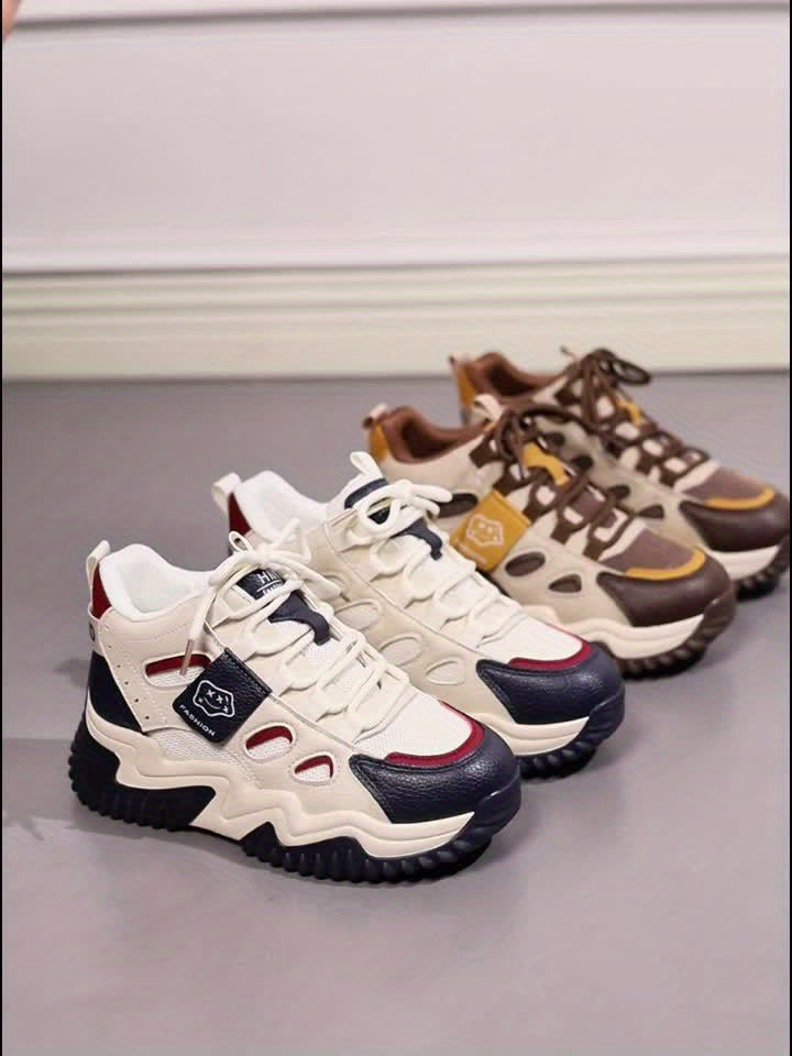 1 Pair Women'S Mid-Top Casual Sneakers, Fashion Mesh Design, Lace-Up Closure, Fabric Upper Lining, Faux Sole, Textile Insole - Spring Season Footwear
