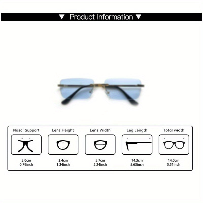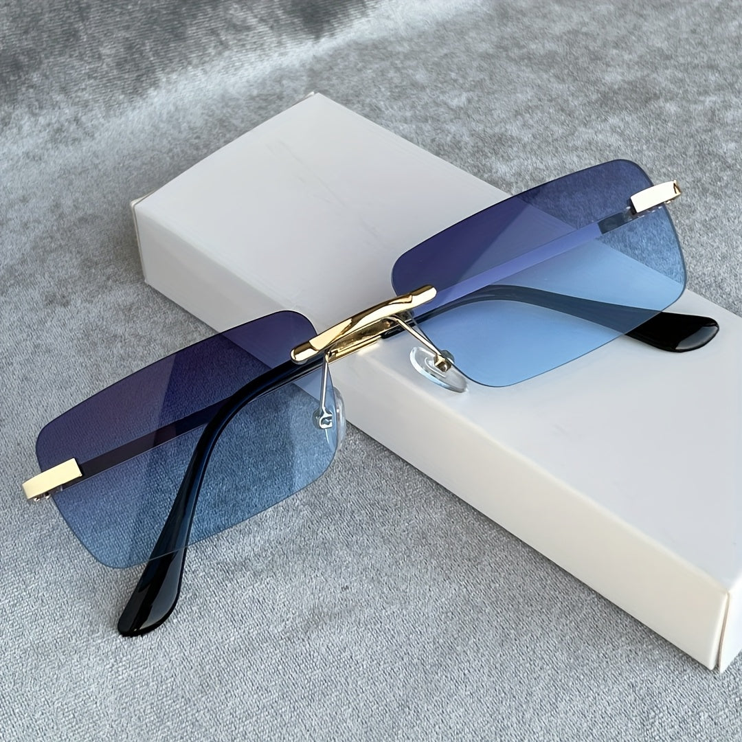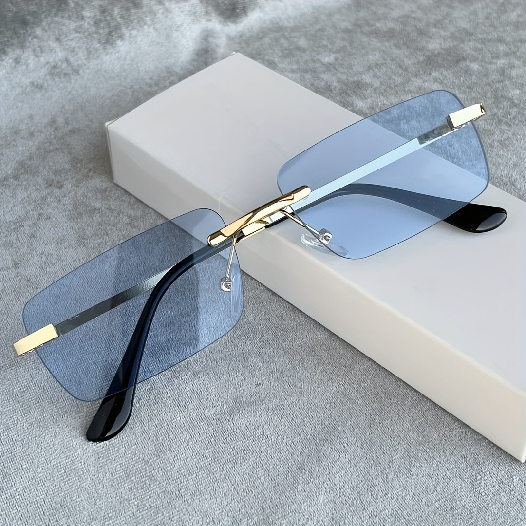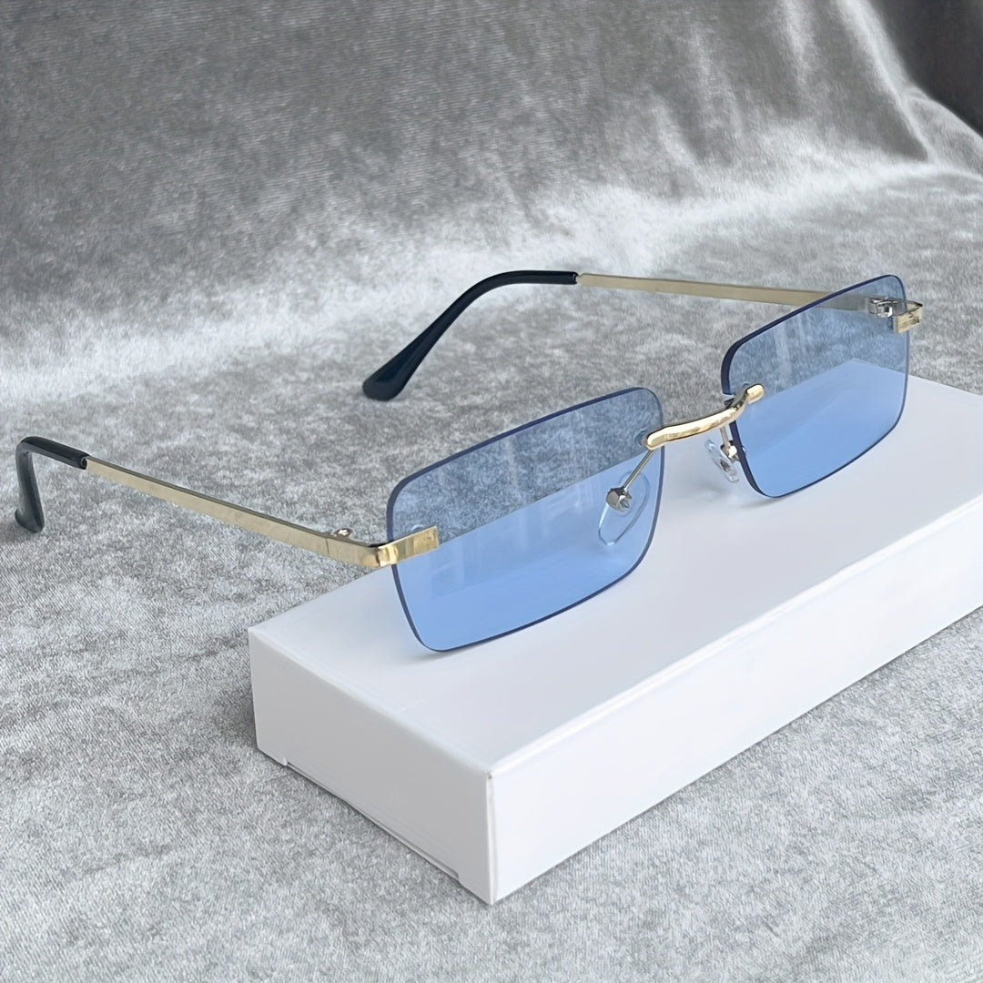 1 Pair Y2K-Inspired Rimless Fashion Glasses - Blue & Golden Frameless Eyewear with Polycarbonate Lenses, Lightweight Durable Rectangular Design for Men & Women, Casual Streetwear, Parties, Everyday Fashion Accessories, Party