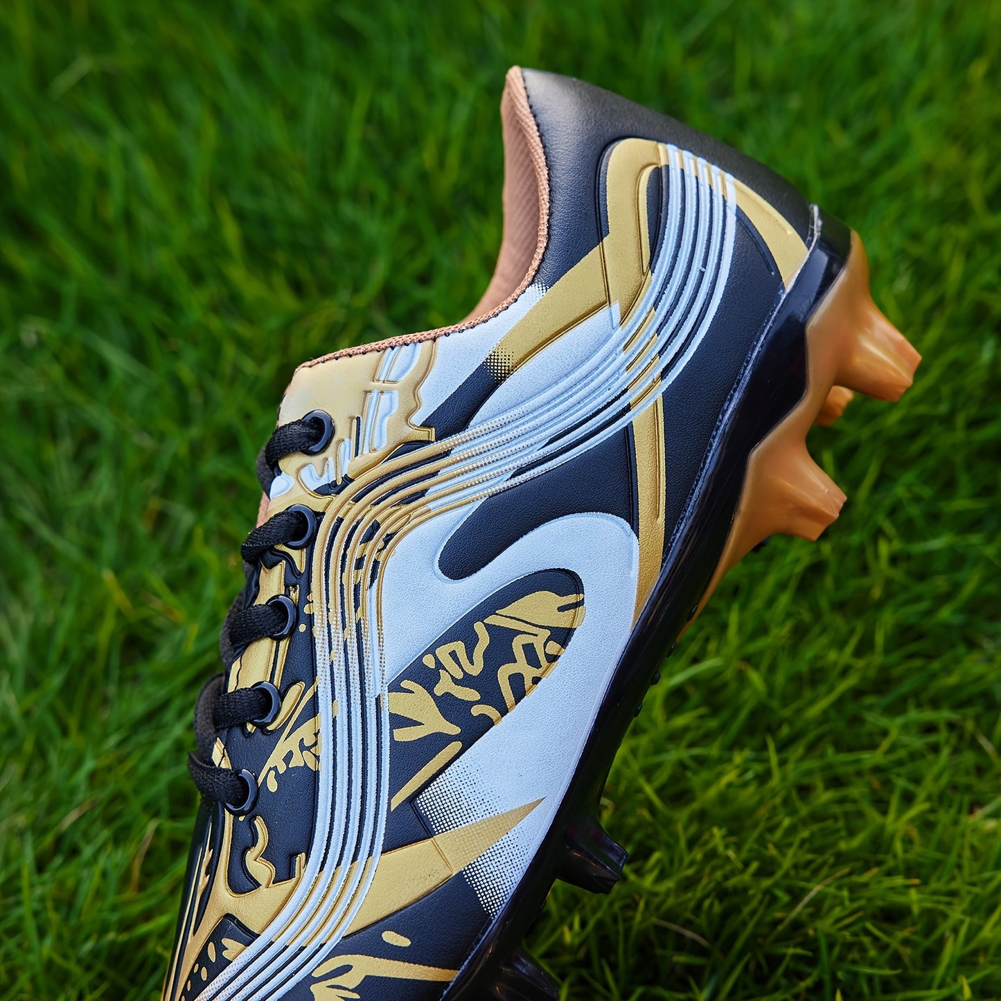 1 Pair Youth Soccer Cleats - All-Season Outdoor Athletic Footwear with Striped Pattern, Breathable Synthetic Upper, Rubber Sole for Training & Running