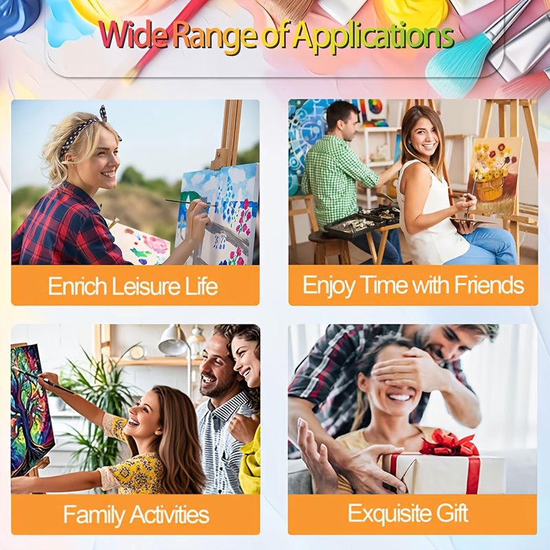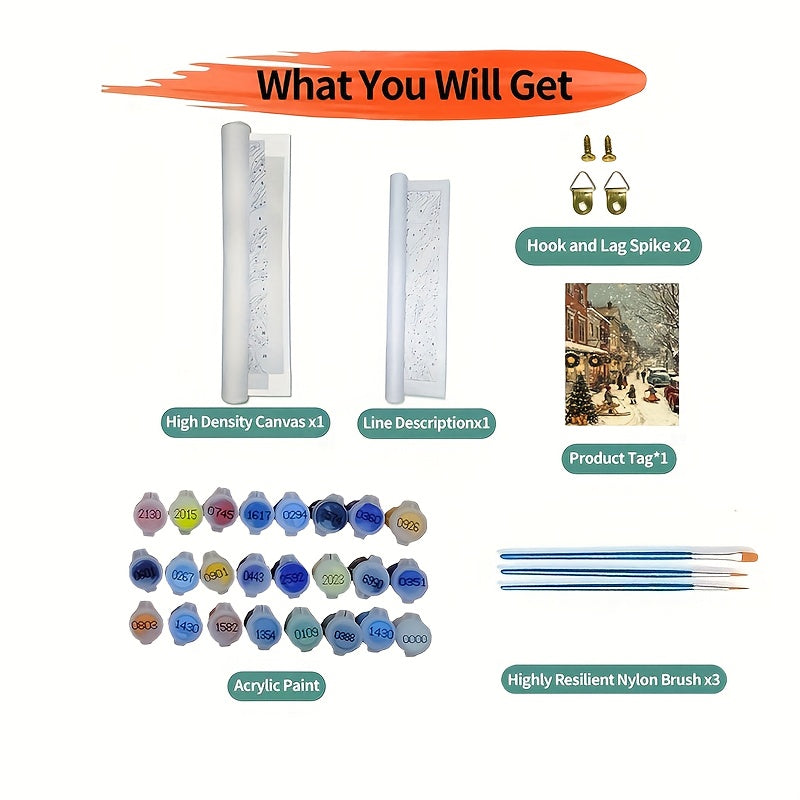1pc Beginner DIY Adult Paint by Numbers Kit - Includes Acrylic Paints, Canvas, 3 Brushes & Instruction Manual | Winter Town Street Scene with Children Skiing and Snowboarding in a House Full of Decorations| 40x50cm/15.7x20in