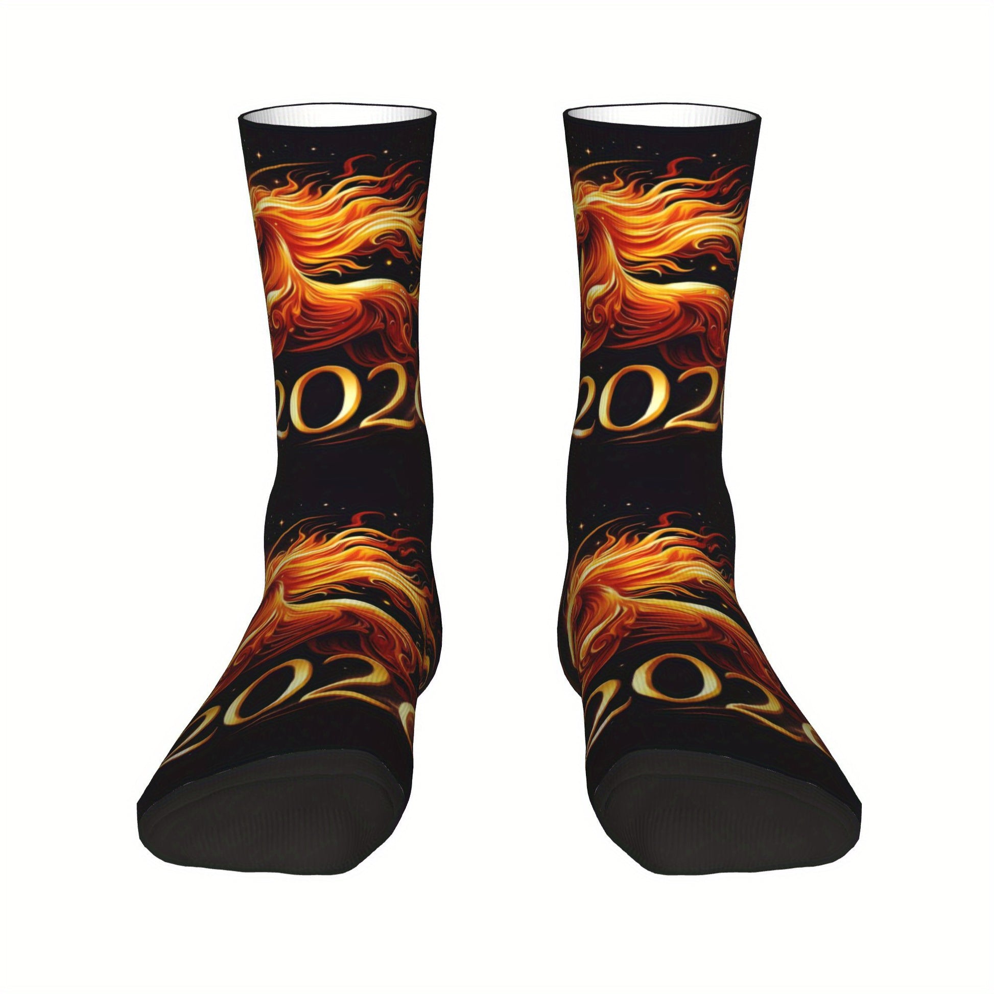 1pc Designed Socks sporty styles 2026 Year of the Horse Creative mid-calf socks geometric designs 3D digital print socks, cute socks for teens and adults ideal for daily wear, perfect for gift giving!