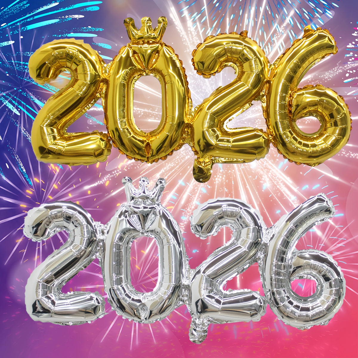 1pc Golden & Silvery Crown 2026 Number Aluminum Foil Balloon - Elegant Golden & Silveryy Finish, No Electricity Needed, Perfect for Christmas & New Year Decorations, Festive Party Supplies, Christmas Decorations, Best for Chr
