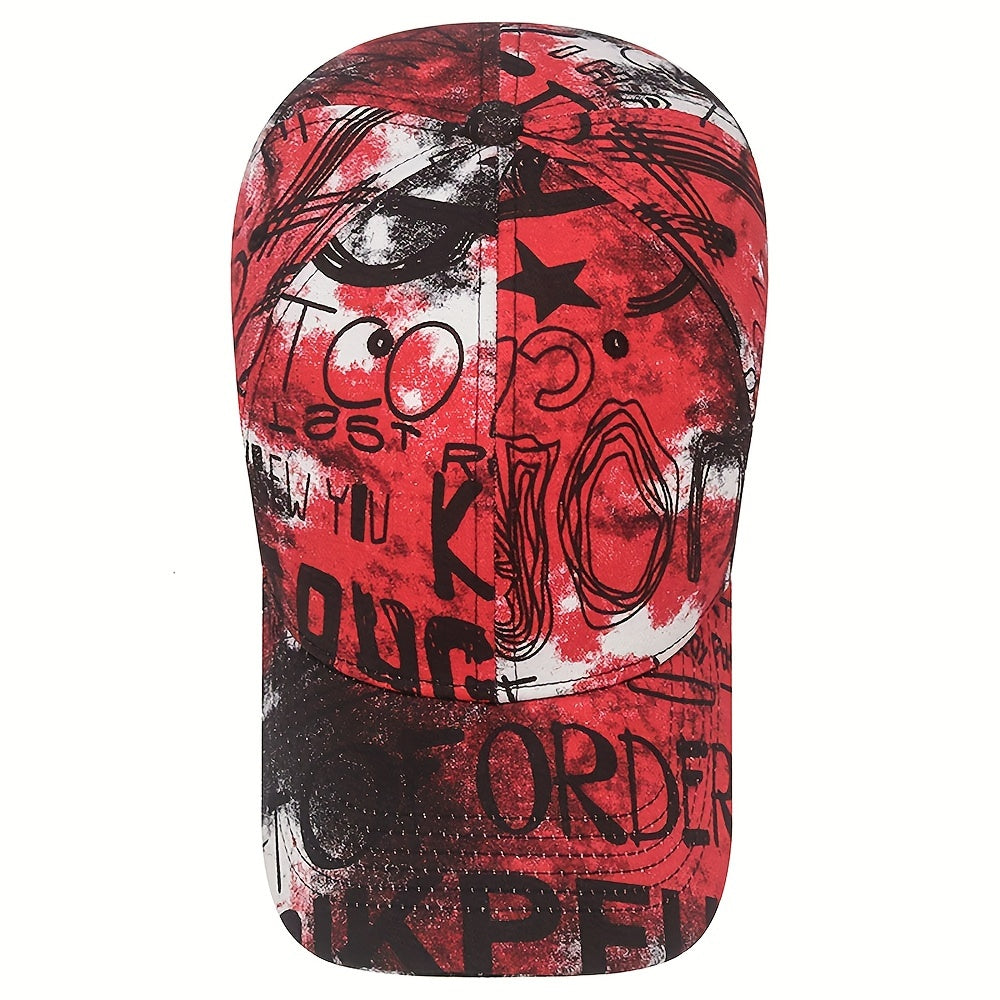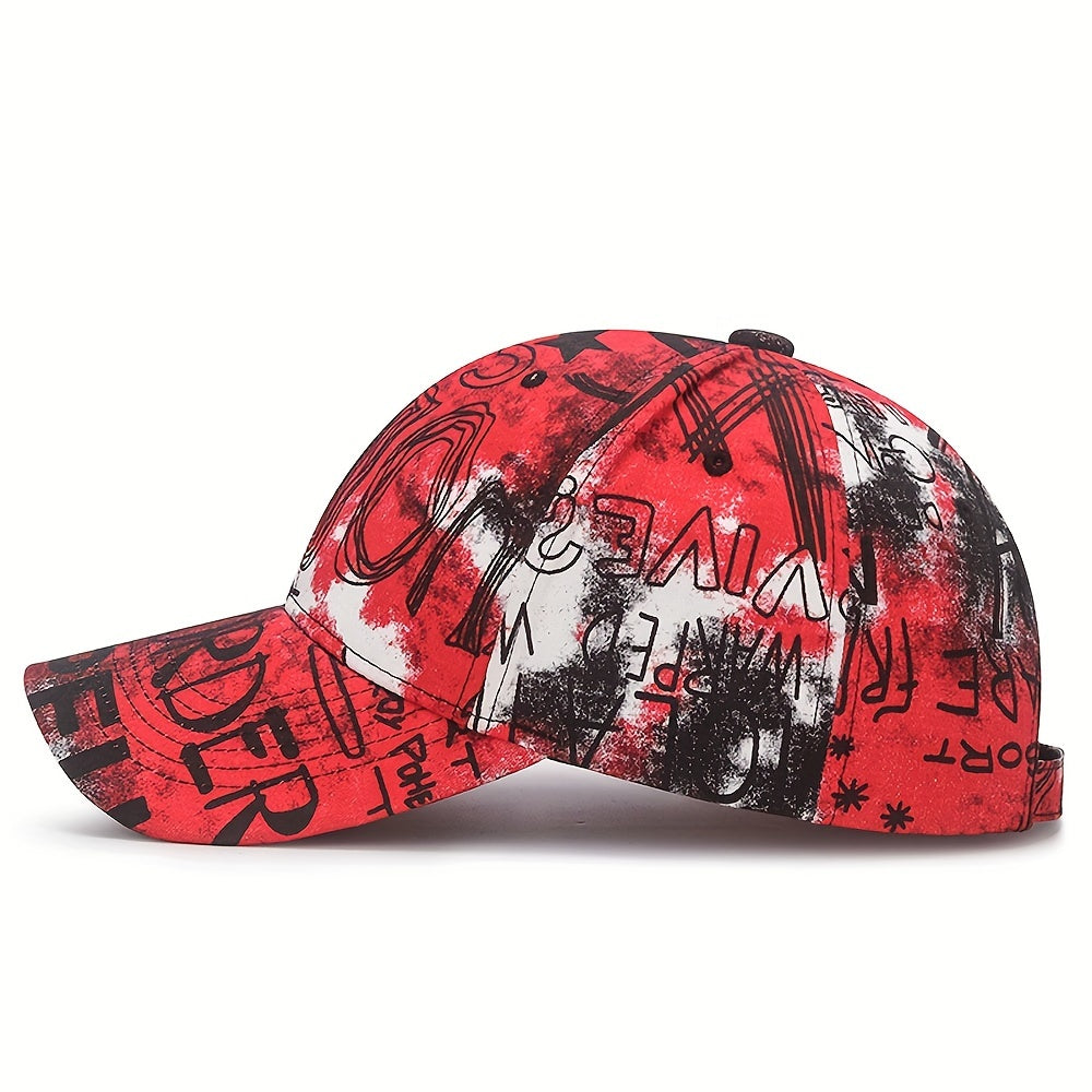 1pc Graffiti Flower Cloth Baseball Cap, Street Trendy Painted Sun Hat