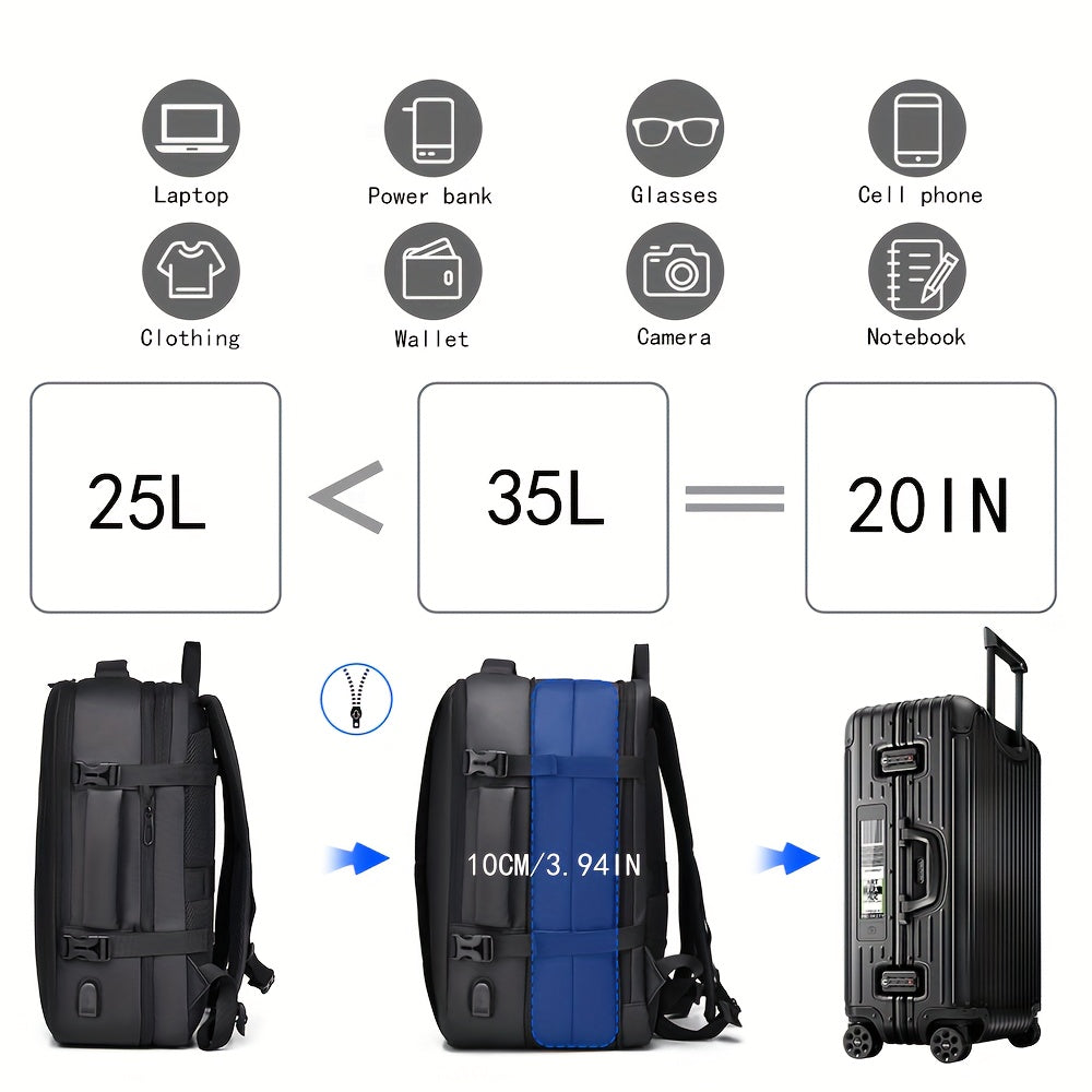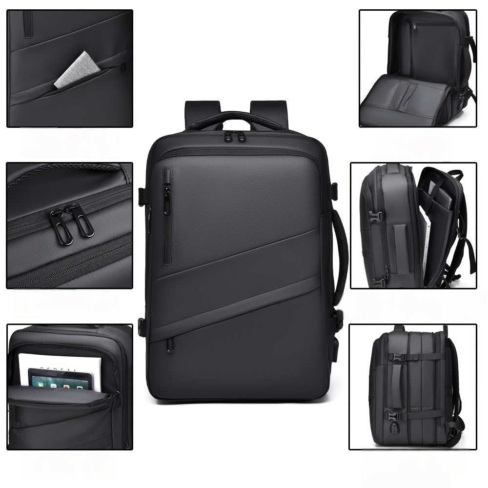 1pc HUABUPS Expandable Travel Backpack with USB Charging Port, 39.62 cm Laptop Backpack for Men & Women, High Quality Business Commuter Backpack with Multiple Compartments, Dilation Design & Padded Straps - Ideal Gift for Chr