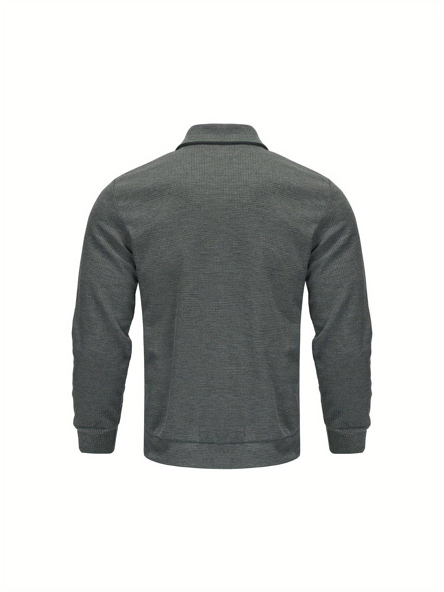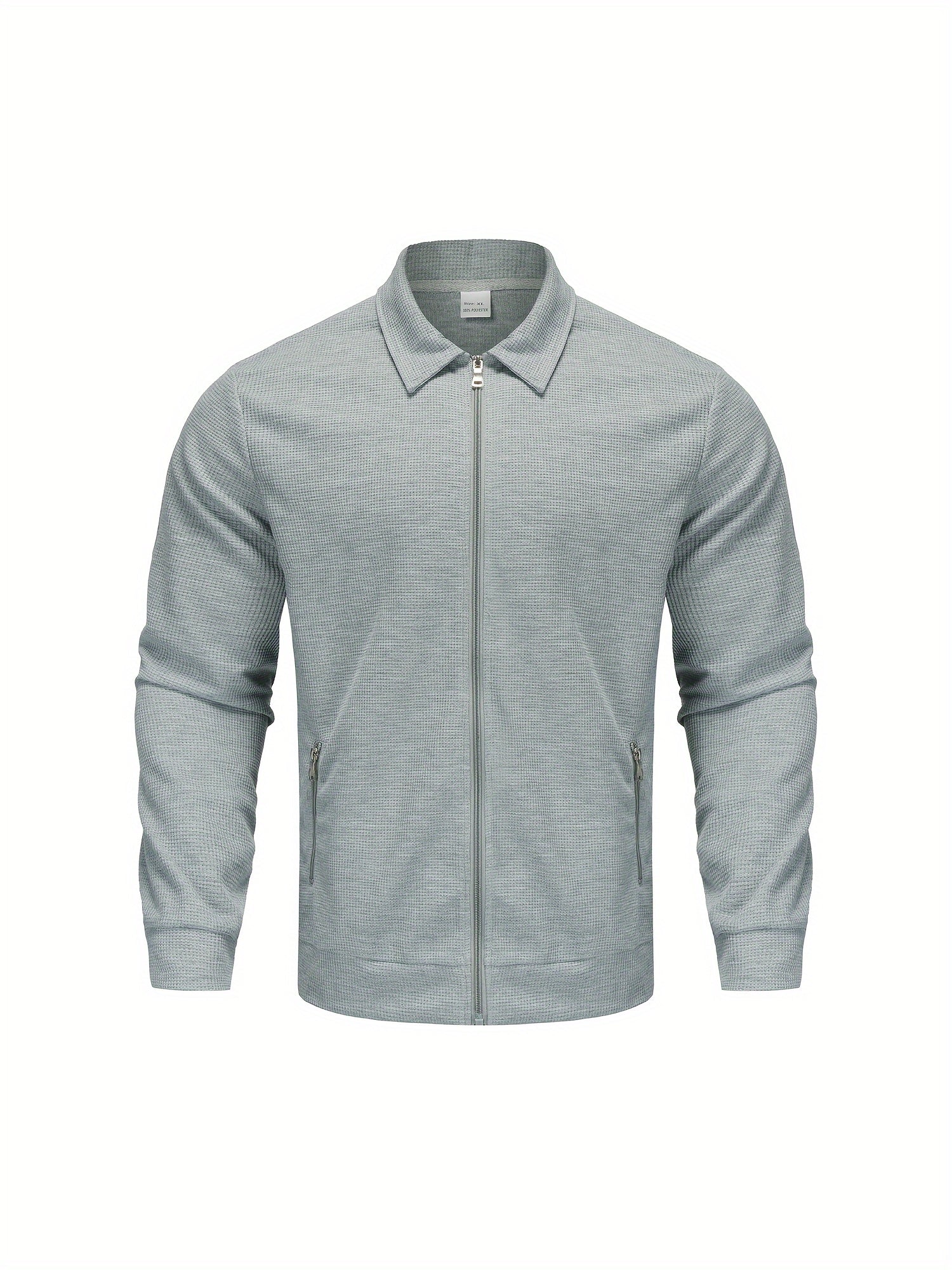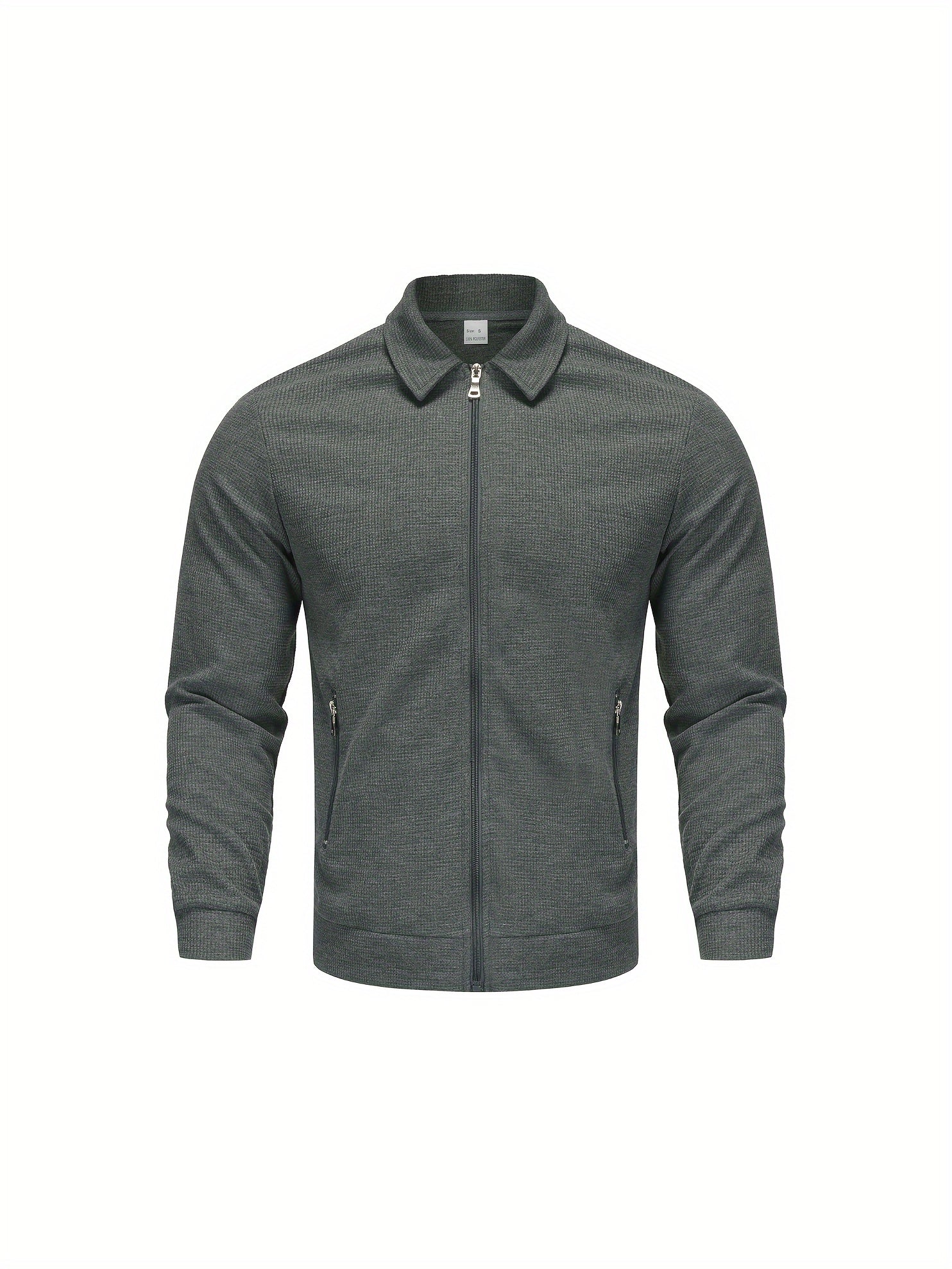 1pc Men'S Casual Polyester Zip-Up Jacket with Lapel Collar, Solid Color, Slight Stretch, Woven Fabric, Regular Fit, No Lining - Spring/Fall Outerwear